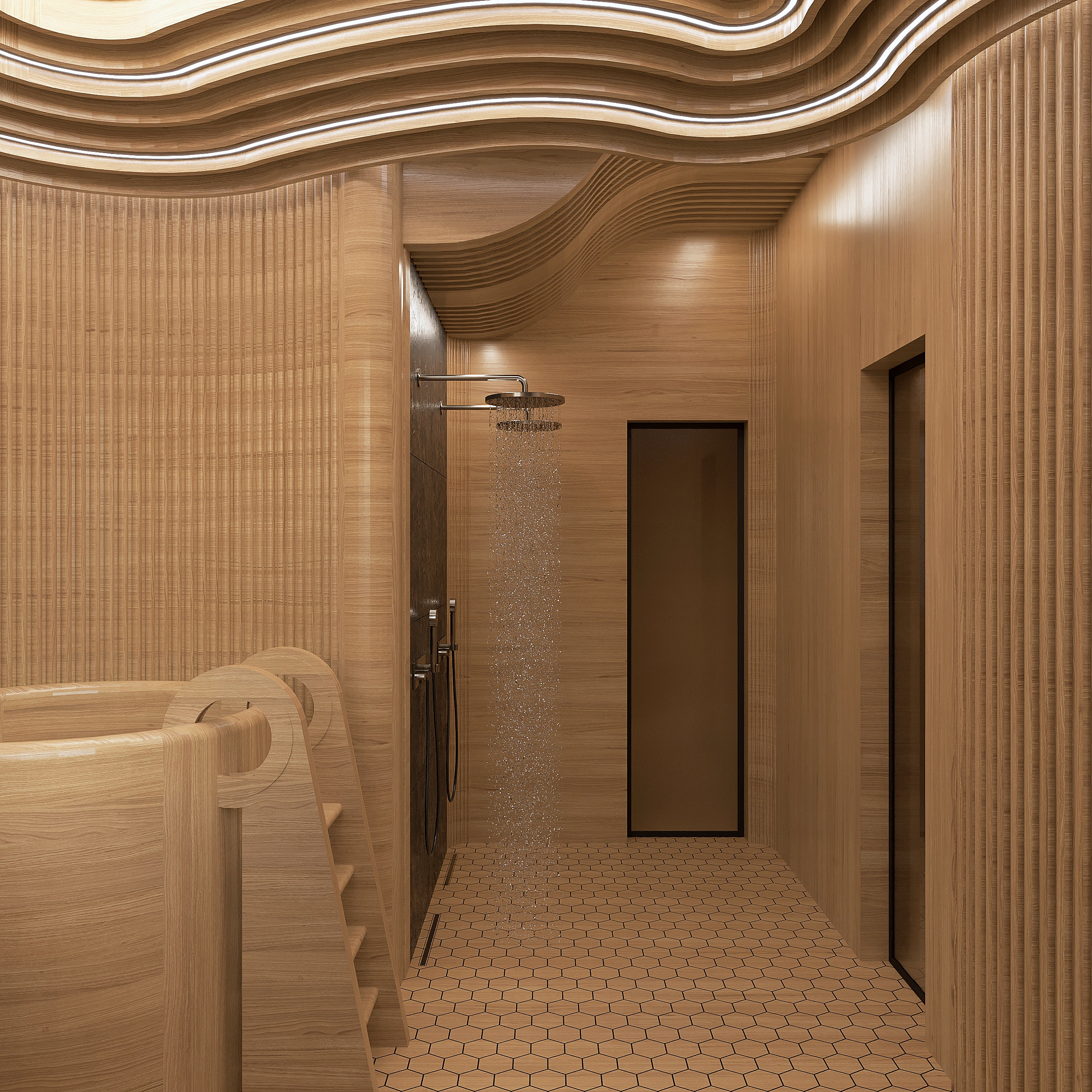 We planned the layout of high-temperature zones, plunge pools, and shower areas.